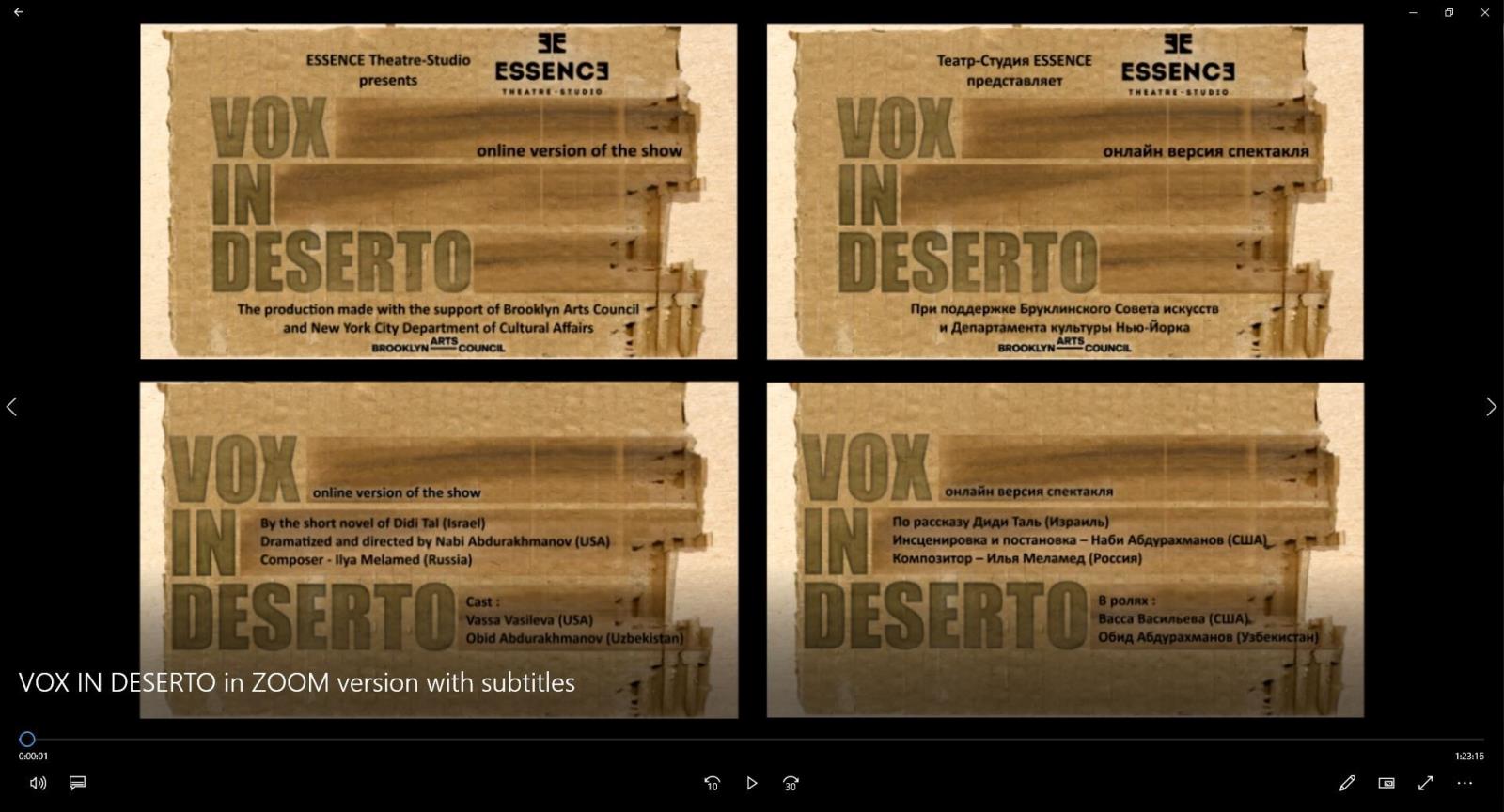«VOX IN DESERTO» стало возможным благодаря государственным фондам Программы Децентрализации Совета Искусств штата Нью-Йорк, управляемой в округе Кингс Бруклинским Советом по делам искусств.
